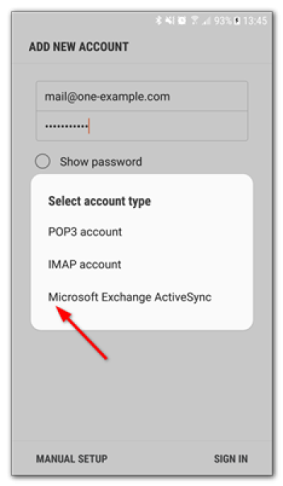 Wählen Sie Microsoft Exchange ActiveSync als Kontotyp aus.