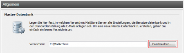 Neben den Archivspeichern ist es erforderlich, die MailStore Master Datenbank (MailStoreMaster.fdb) ebenfalls zu sichern. Diese enthält unter anderem alle Konfigurationseinstellungen der Benutzer und Profile.