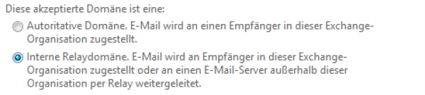 Domänentyp in Office365 Wave15: wir brauchen Interne Relaydomäne