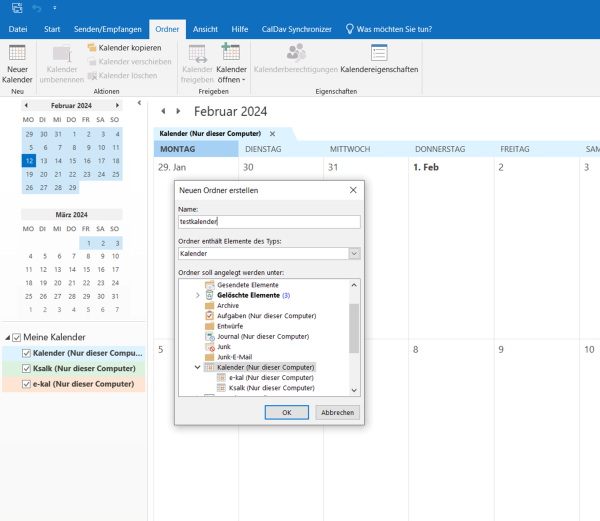 Zuerst müssen Ordner für die zusaätzlichen kalender / Adressbücher angelegt werden.