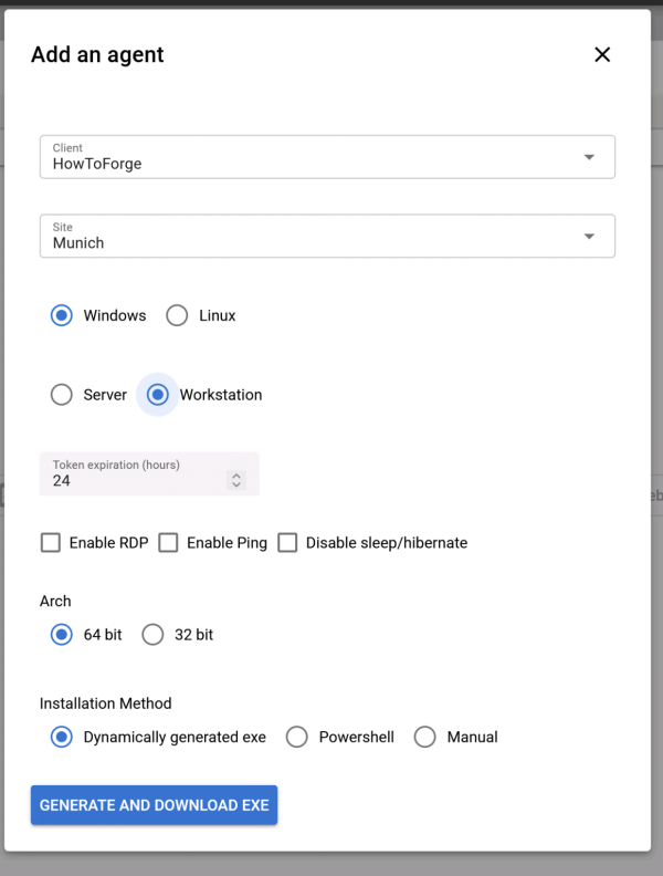 Danach müsst ihr bestimmen, welcher Client und welche Site dem Agent zugeordnet werden soll, wenn ihr Zugriff über eine GUI benötigt. Dann solltet ihr Enable RDP markieren.