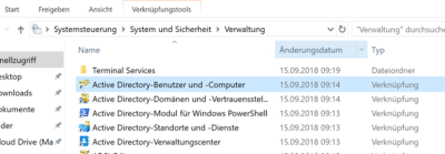 Melde dich an deiner Active Directory an und öffne „Active Directory-Benutzer und -Computer” (Start → Windows-Verwaltungsprogramme)