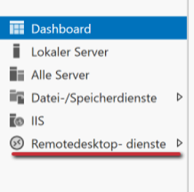 Öffne deinen Server-Manager und navigiere in der linken Leiste zu „Remotedesktop- dienste“