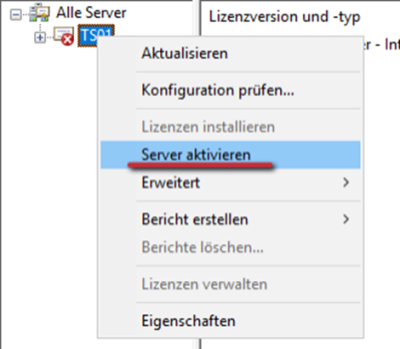 Klicke mit der rechten Maustaste auf deinen Server und wähle „Server aktivieren“
