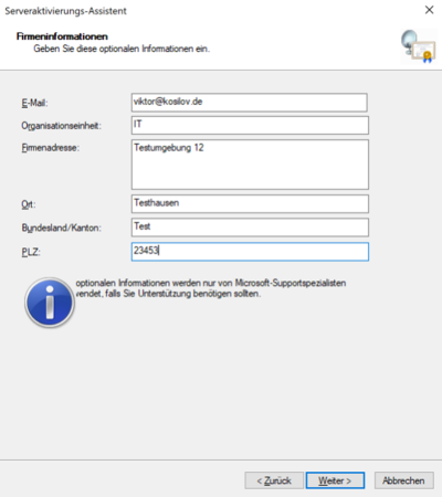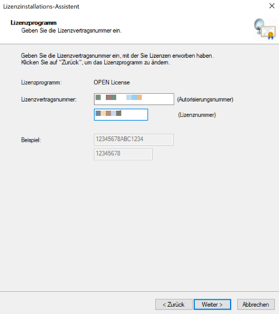 Gib deine Lizenzdaten ein und klicke auf „Weiter >“.