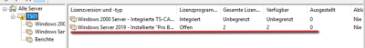In deiner Übersicht siehst du nun die Lizenz, die du gerade hinzugefügt hast. Der Server zeigt aber immer noch ein gelbes Dreieck mit Ausrufezeichen, darum kümmern wir uns gleich nach diesem Bild