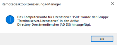 Außerdem muss der DNS Dienst korrekt funktionieren, was aber sowieso eine Grundvoraussetzung für die Active Directory ist. Der Benutzer mit dem du den Terminal Server installieren möchtest muss in der Gruppe „Domänen-Admins“ sein. Des weiteren benötigst du im weiteren Verlauf folgende Lizenz „Microsoft Windows Server 2019 RDS Device CAL“, je nach dem wie viele Benutzer auf dem Server arbeiten sollen musst du die entsprechende Lizenz kaufen, du kannst später auch Lizenzen dazu kaufen. Mehr zu dem Thema findest du hier https://docs.microsoft.com/de-de/windows-server/remote/remote-desktop-services/rds-client-access-license