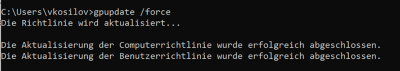 Der Server ist nun fertig eingerichtet, solltest du recht schnell gearbeitet haben und der RDS-Server hat die Gruppenrichtlinien noch nicht übernommen, kannst du in der Konsole den Befehl „gpupdate /force“ eingeben, damit übernimmt der Server die Gruppenrichtlinien sofort.