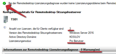 Du solltest nun keine Fehler sehen dürfen, es sollte ein grüner Kreis mit einem weißen Hacken zu sehen sein. Du siehst ebenfalls wie viele Lizenzen erkannt wurden und die Art der Lizenzierung